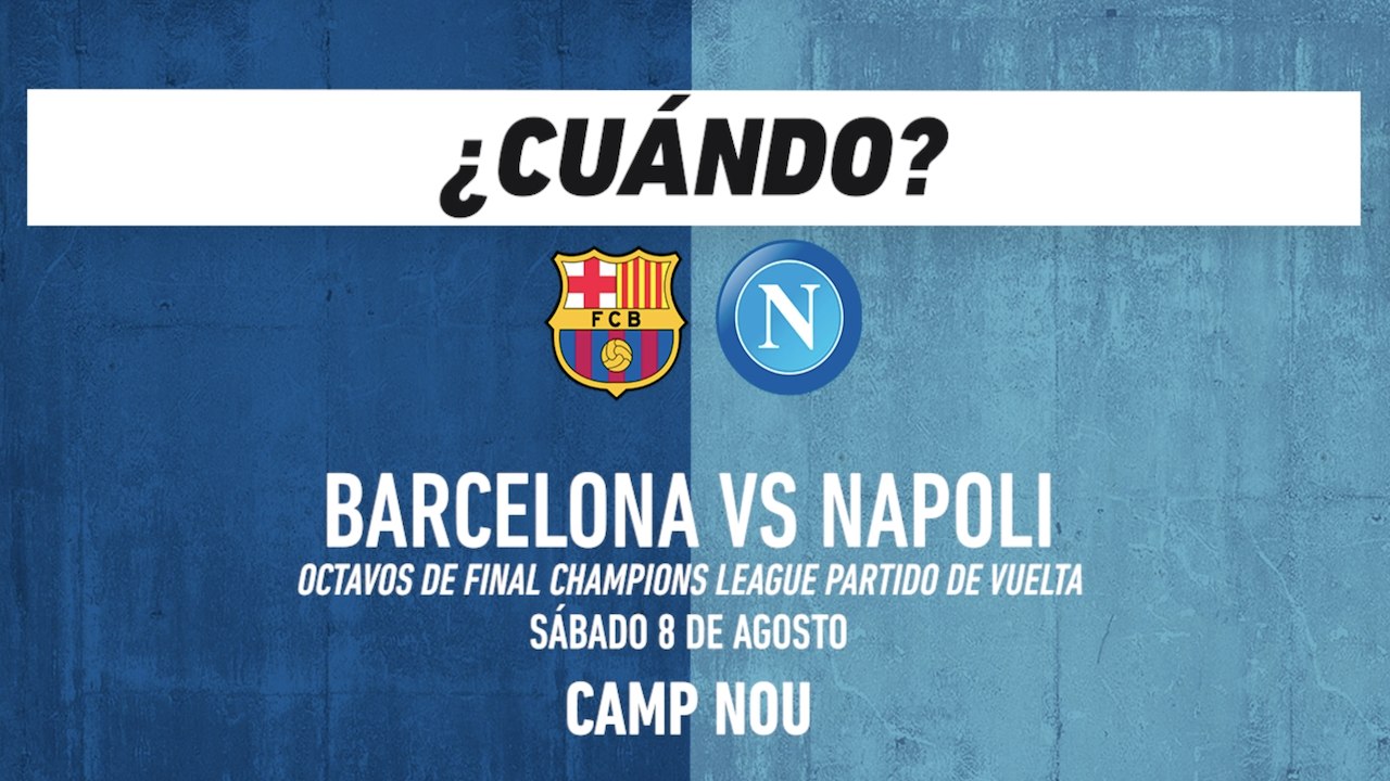Barcelona vs napoli buscarán el pase a los cuartos de final de la champions league este sábado. Barcelona y napoli se enfrentan el próximo 8 de agosto en el camp nou por la vuelta de los octavos de final de la champions league. Sigue aquí en vivo las acciones del partido.