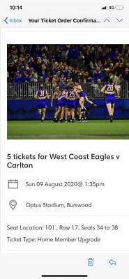 Carlton vs west coast family of 4 ticket. Sections 104 or 106 payment accepted via paypal so both parties have protection tickets are transferred via source. 2 days ago west coast vs carlton afl tickets sunday 9th august 2020.