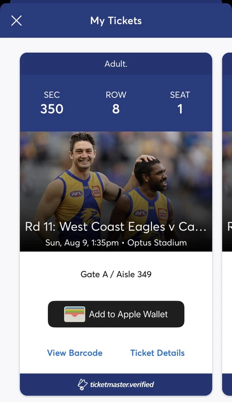Carlton vs west coast tickets. Watch the eagles and blues battle it out at optus stadium for this round 11 afl clash. Will need to transfer tickets through ticketmaster forward so will need your email connected to ticketmaster account. West coast eagles v carlton.