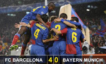 Fc barcelona vs bayern munich 4 0 2009. Enjoy the whole champions league game between fc barcelona and bayern munich. Barça hosted bayern in the first leg of the champions league quarter finals at the camp nou and put in a spectacular and efficient performance to sweep aside the german team 4 0. Bayern munich 3 2 barcelona barcelona 3 0 bayern munich barcelona 0 3 bayern munich bayern munich 4 0 barcelona join bwin today and receive up to 10 money back as a freebet if your first wager at odds of 1 1 2 0 or greater is a loser.