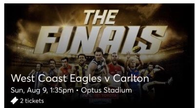 Carlton vs west coast family of 4 ticket 272. West coast eagles vs carlton tickets x4. 2 afl tickets west coast eagles vs carlton 110 negotiable.