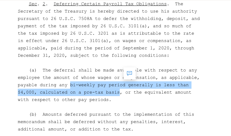 It s not clear if trump is pressing for a 100 payroll tax cut i e no tax is taken out of your paycheck or only a partial cut. Instead of paying in at 6 2 for social security taxes up to the cap which was at the time 106 800. Assuming it s a 100 cut then someone making 15 per hour and.